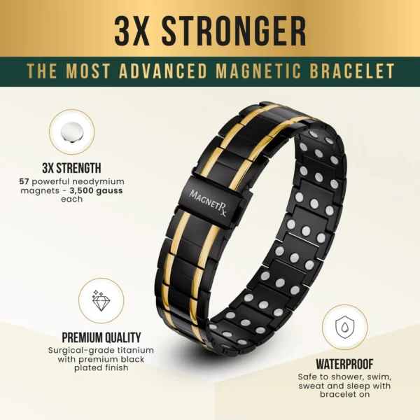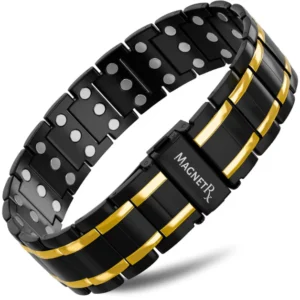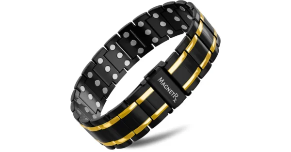 Elegantna i izdržljiva magnetna narukvica izrađena od visokokvalitetnog titanija, dizajnirana za muškarce koji žele stil i dobrobit u jednom proizvodu. Sadrži trostruke magnetne elemente koji mogu doprinijeti smanjenju napetosti, poboljšanju cirkulacije i povećanju energije.